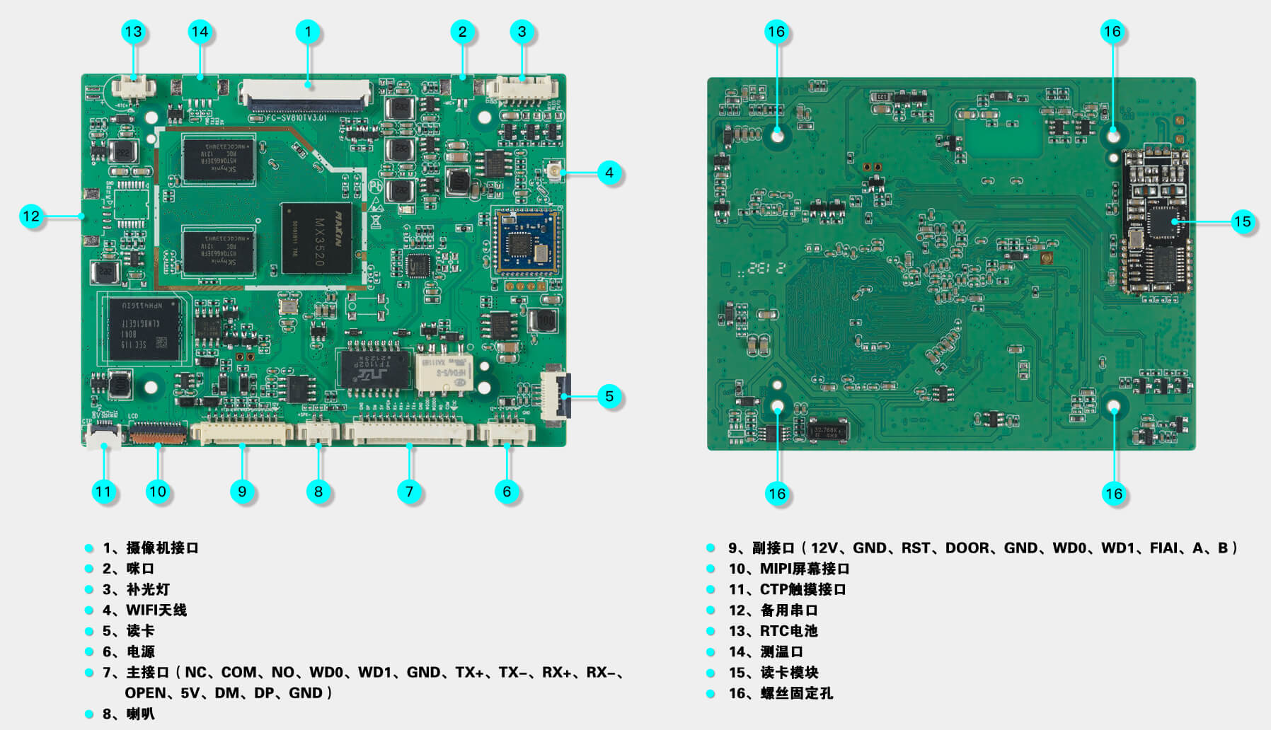 出門開關(guān)×1、門磁接口×1、消防輸入×1、報(bào)警輸出×1、Wiegand輸出×1、Wiegand輸入×1、門鎖控制×1、USB×1、RS485×1