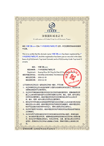 國家頂級域名注冊證書