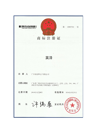 YingZe Trademark Registration Certificate