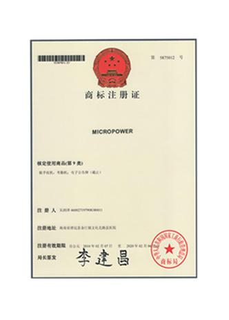 MICROPOWER Trademark Registration Certificate
