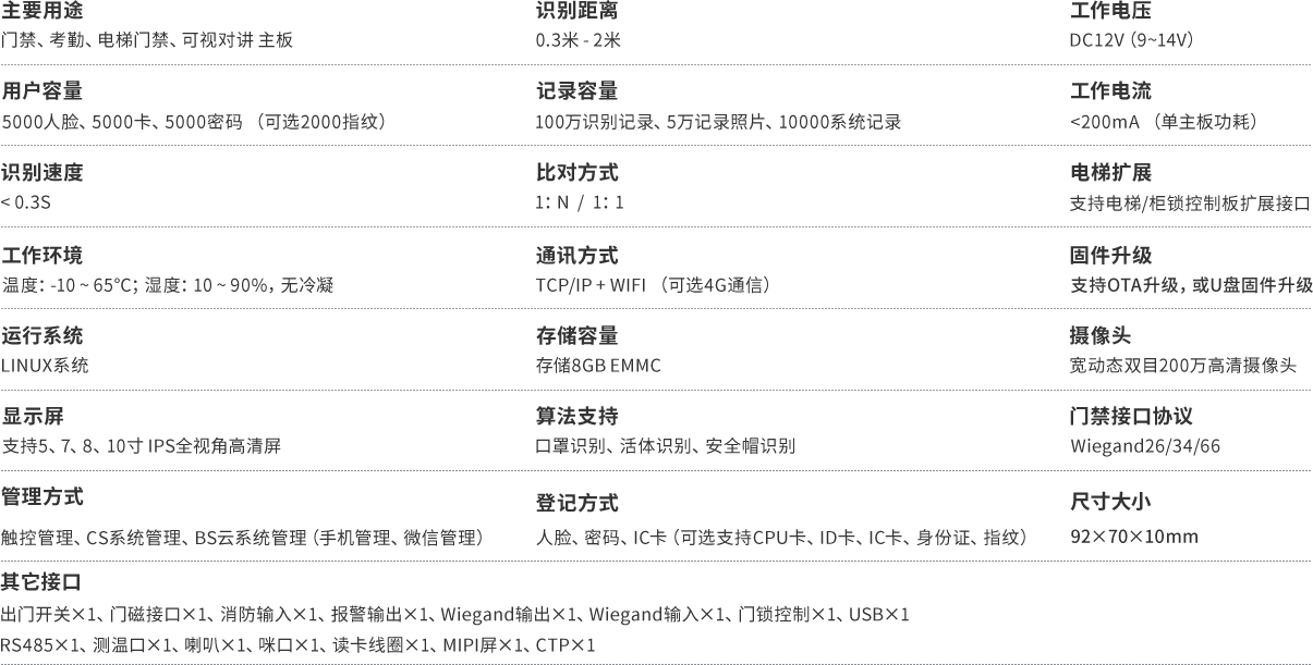 (可擴(kuò)容至100000人臉?biāo)闩c20000指紋)