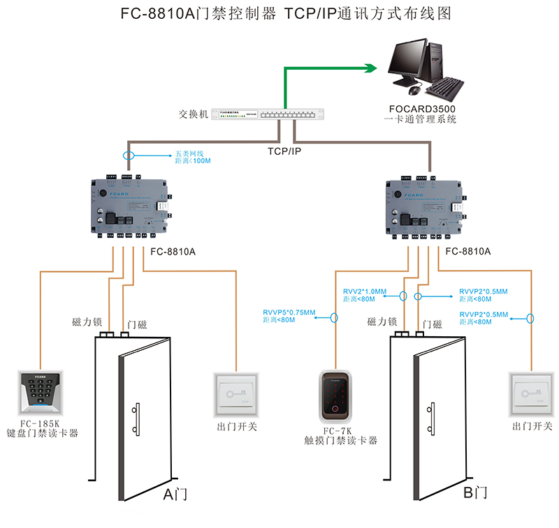 FC-8810A單門門禁控制器TCP/IP通訊方式布線圖