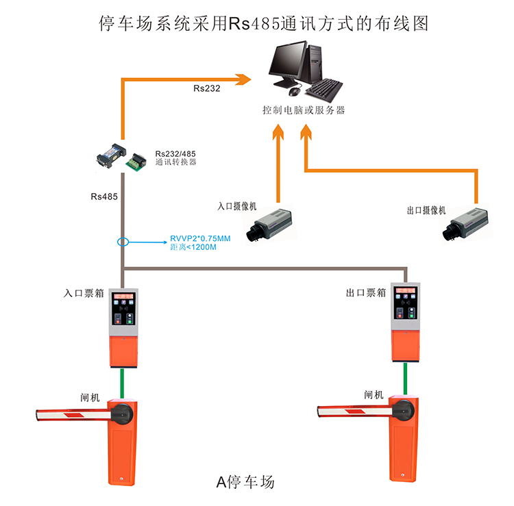 停車場(chǎng)系統(tǒng)采用Rs485通訊方式的布線圖