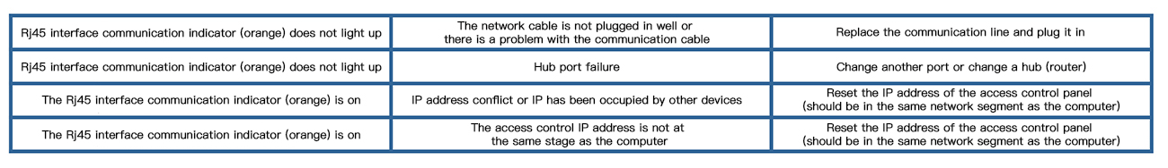 6、If you meet problems when in adjust(access controller use TCP/IP comunication way), please solve according to the following picture.