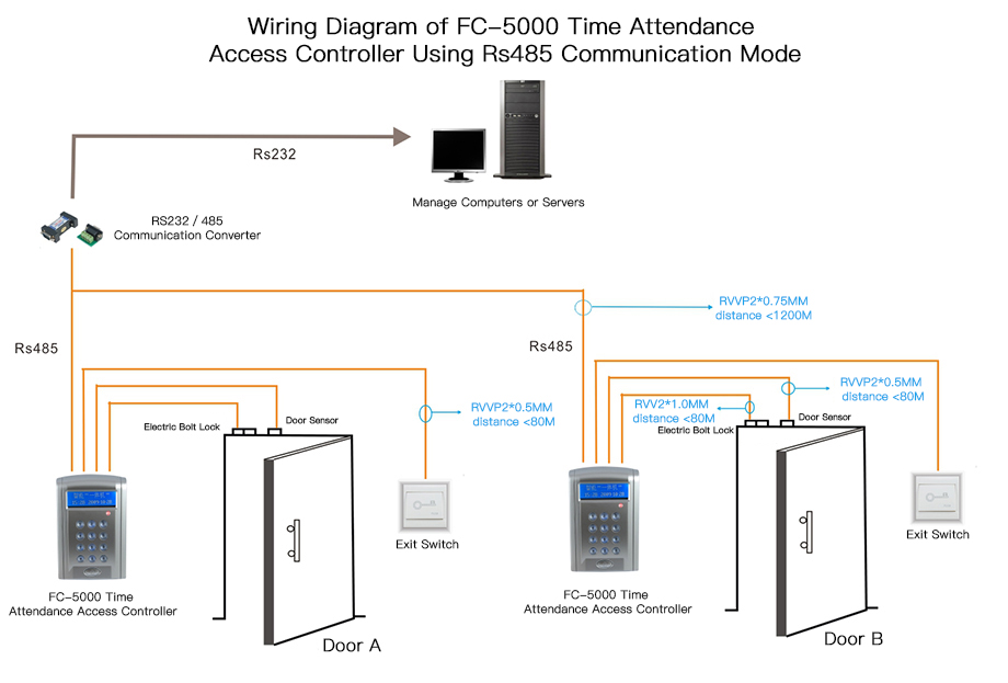 The wiring diagram of FC-5000(Use RS485 Communication Way)