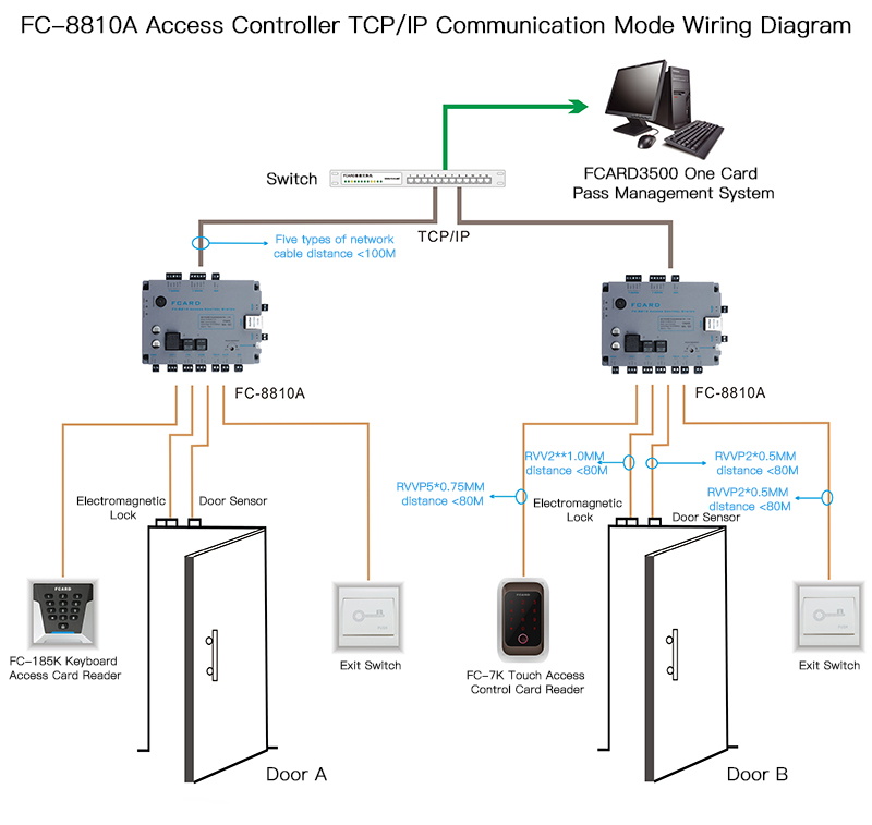 Hello, thank you for your attention to our company, in order to let you understand that our company's products, we are now offering you the FC-8810A single access controller TCP/IP communications wiring diagram and hope it can help you solve the problem, at the same time we are also looking forward to your visit, free consultation telephone: 400-688-6663.