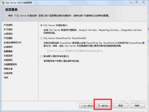 6.設(shè)置角色界面:第一個是自定義,第二個是基礎(chǔ)功能安裝,第三個是完全安裝,選中你需要的功能: