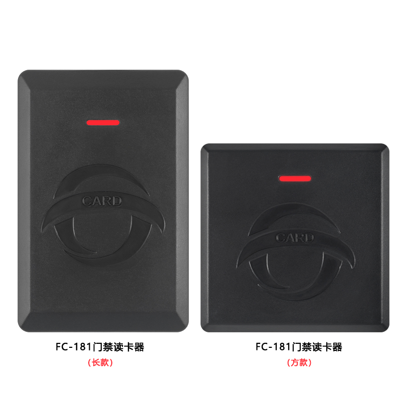 FC-181門禁讀卡器根據(jù)讀卡類型可選型號(hào):FC-181E(ID卡:長(zhǎng)款/方款)或FC-181M(IC卡:長(zhǎng)款/方款)