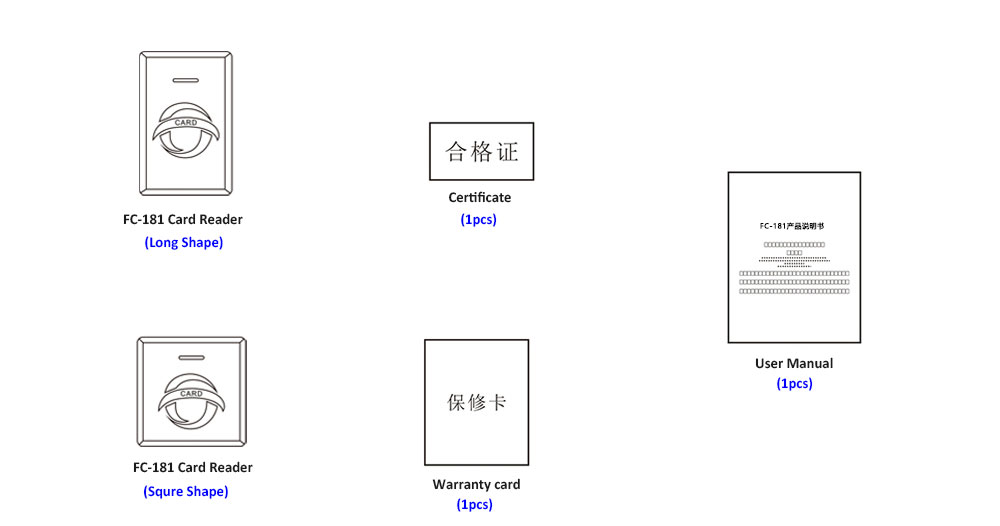 FC-181 RFID Card Reader, adopts the advanced RF technology and embedded mini access controller, combined with efficient decoding algorithm to achieve 64 bits Read-Only EM4100 compatible ID card(EM Card) and 13.56MHz frequency, encrypted algorithm to get the MIFARE format Mifare card data, get the card number by calculate, have high sensitive, small current, power supply, low price, excellent functions. FC-181 RFID Card Reader is suitable for access control system, time attendance system, charge, burglar etc.