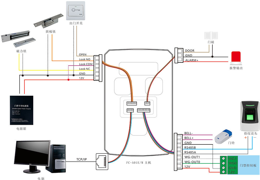 FC-A01 指紋讀卡器是一款集指紋 + 讀卡于一體的指紋讀卡設(shè)備,負(fù)責(zé)讀卡與采集指紋信息發(fā)送門禁控制器, 自身無人員數(shù)據(jù)處理能力,只作為讀卡與采集指紋使用。FC-A01E通過RS485將指紋信息發(fā)送給門禁控制器。