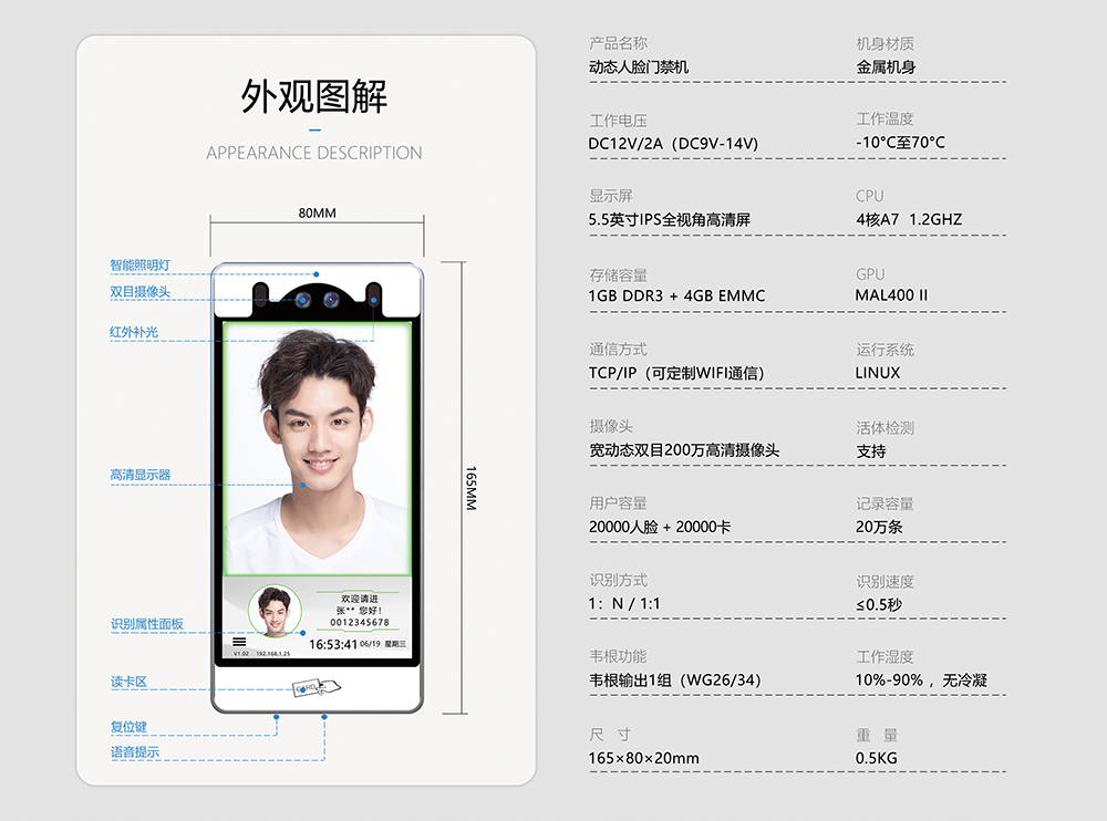 使用了FC-8100T人臉門禁機(jī),提供一下該產(chǎn)品的外觀尺寸與技術(shù)參數(shù)?