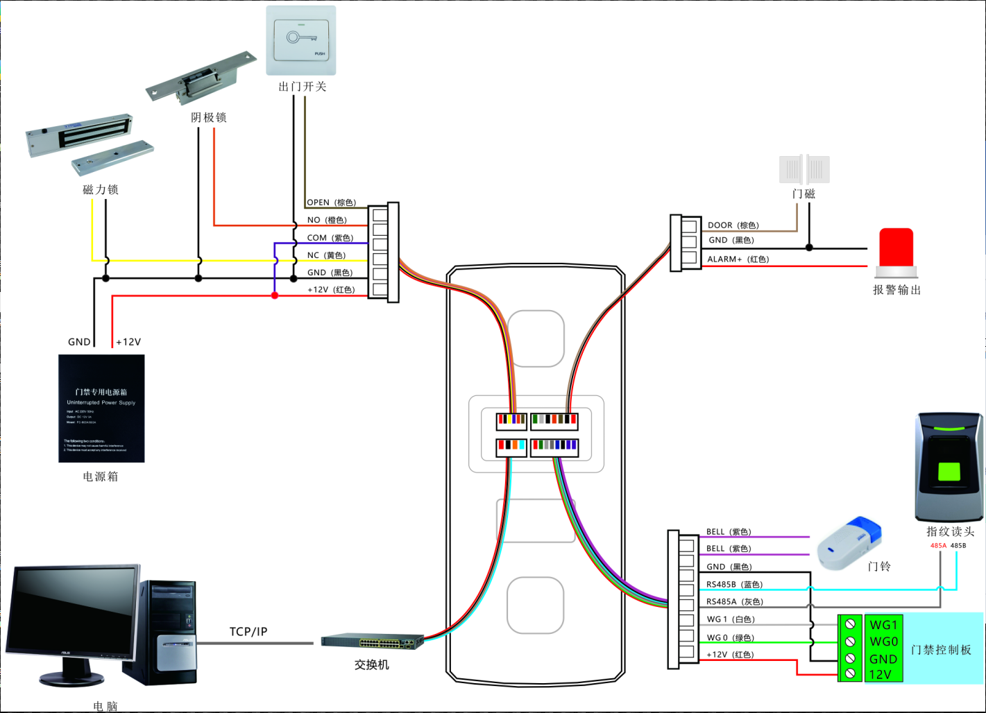 麻煩提供一下FC-D103E金屬指紋門(mén)禁考勤一體機(jī)的連線(xiàn)圖