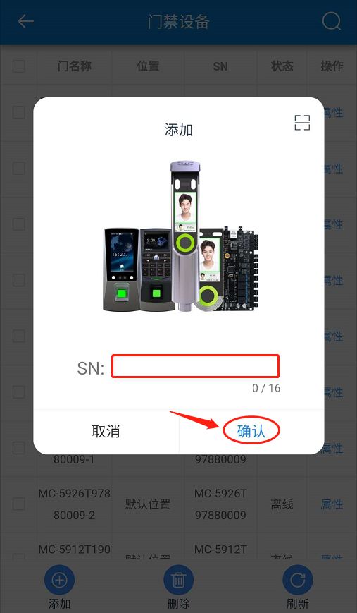 點擊【門禁】-【門禁設備】-【添加】。如下圖所示: