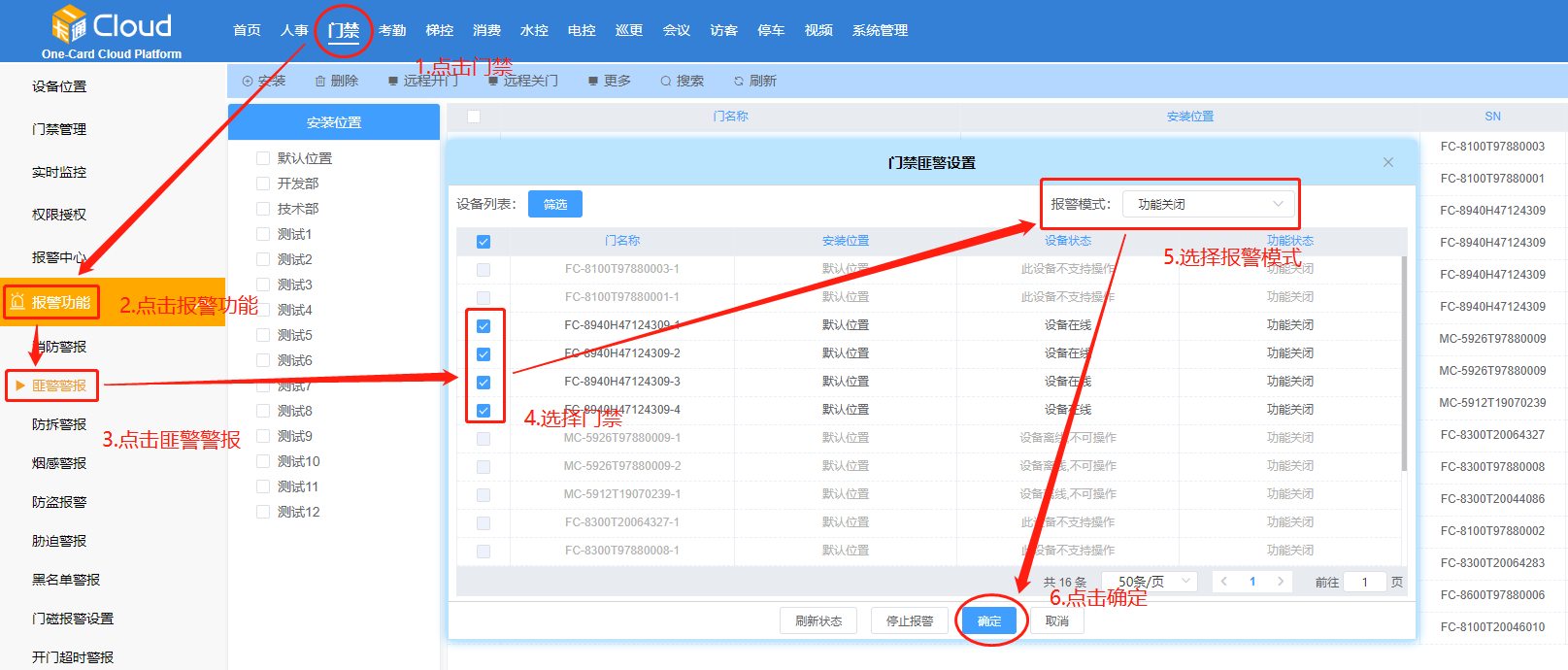 點擊【門禁】-【報警功能】-【匪警警報】。如下圖所示: