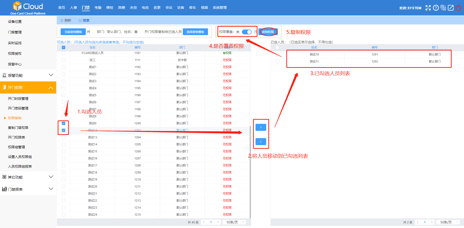 勾選人員-移動勾選人員到已選人員列表-是否【權(quán)限覆蓋】-【復(fù)制權(quán)限】。如圖16-2所示: