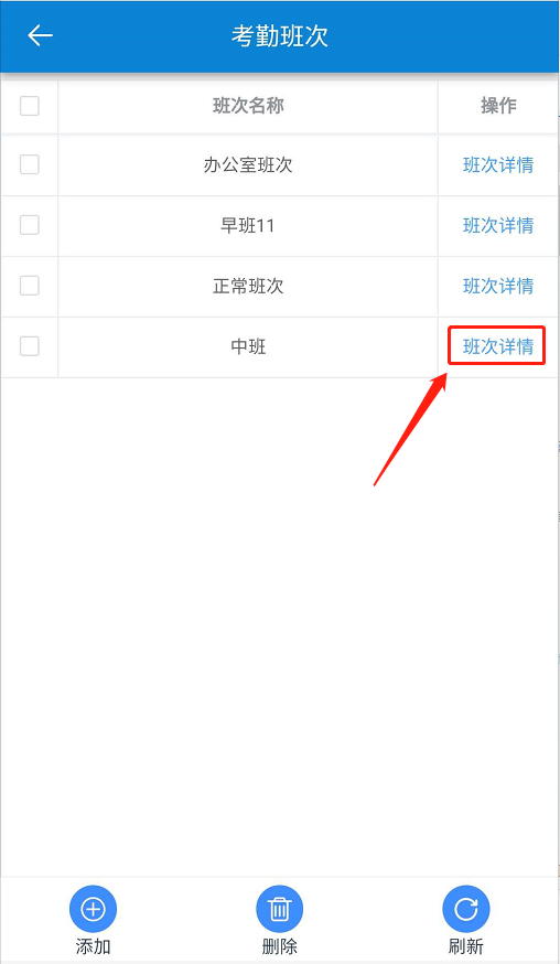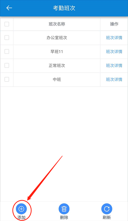 點(diǎn)擊【考勤】-【考勤班次】-【添加】。如下圖所示: