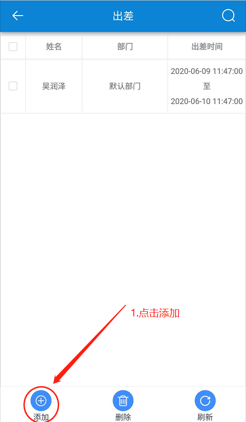 在【出差】頁面,點(diǎn)擊【添加】-勾選人員-點(diǎn)擊【下一步】-設(shè)置【出差時(shí)間、備注】-點(diǎn)擊【確定】。如下圖所示: