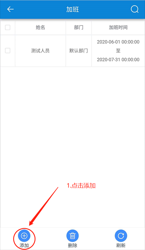 點(diǎn)擊【考勤】-【考勤登記】-【加班】。如下圖所示: