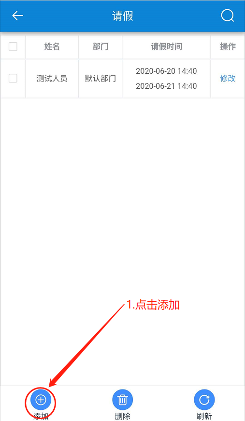 點(diǎn)擊【考勤】-【手動(dòng)登記】-【請(qǐng)假】-點(diǎn)擊【添加】-勾選人員-設(shè)置【請(qǐng)假類型、時(shí)間、原因】-點(diǎn)擊【確定】。如圖28-1所示: