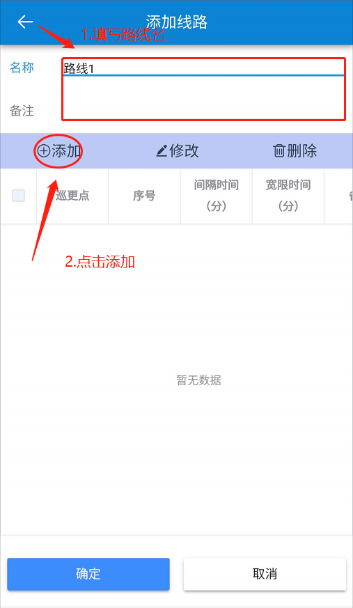 點(diǎn)擊【巡更】-【巡更路線】-點(diǎn)擊【添加】。如下圖所示: