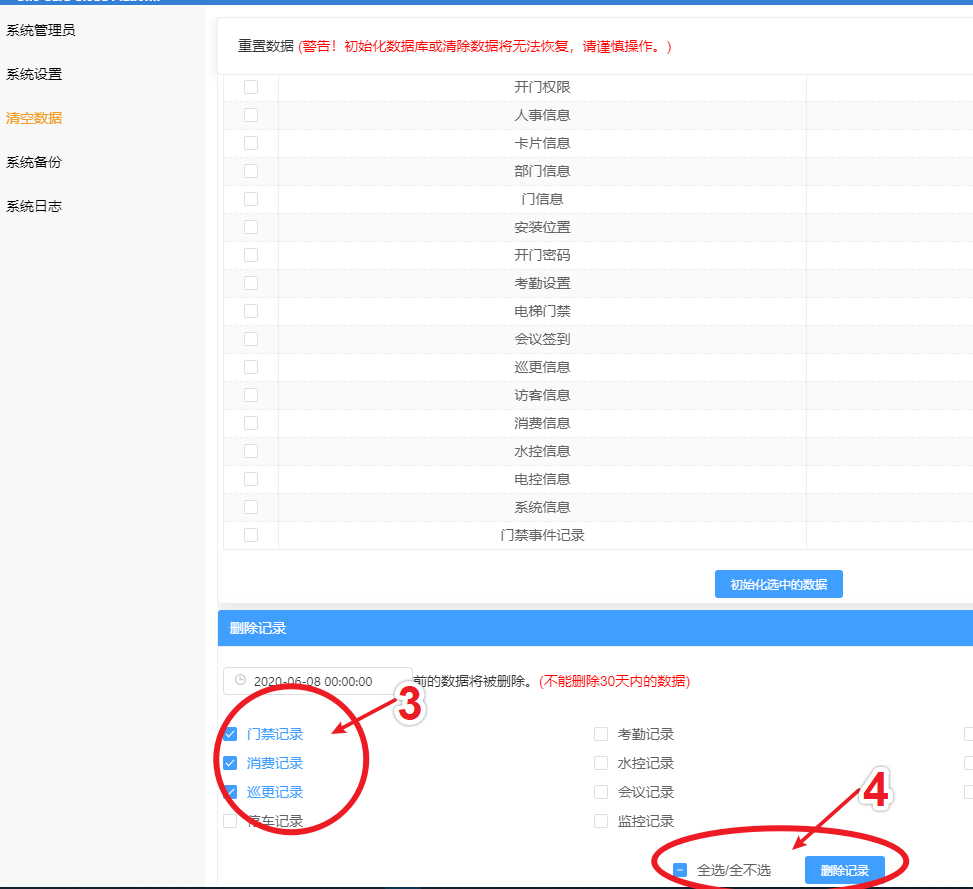 選擇刪除記錄里面的某個記錄(注意:初始化項目里面的選項謹慎刪除)