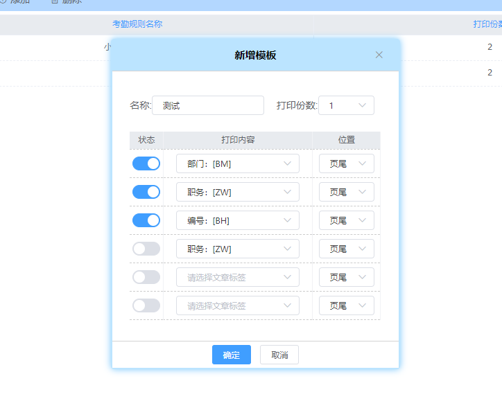 添加/修改打印模板 設(shè)置狀態(tài),打印內(nèi)容,打印位置,點(diǎn)擊確定保存