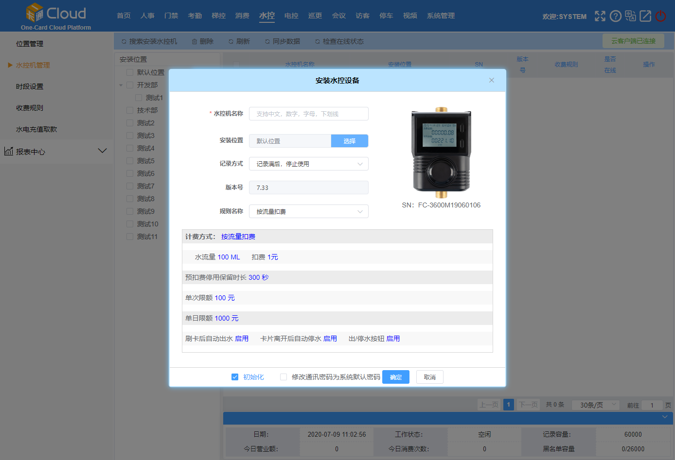 設置水控機參數(shù)