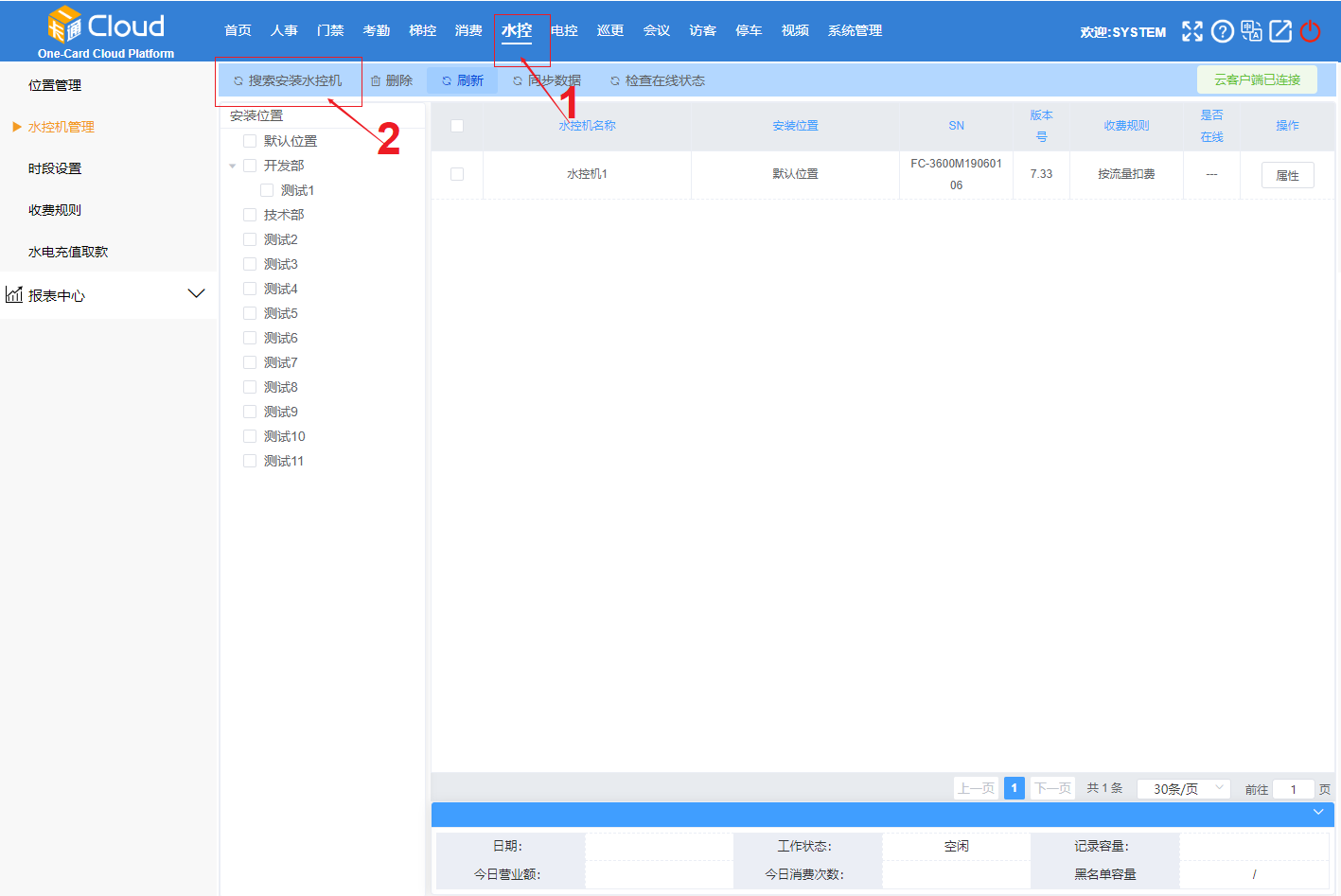 1. 先搜索安裝水控機 (確保設備與電腦連接) 點擊