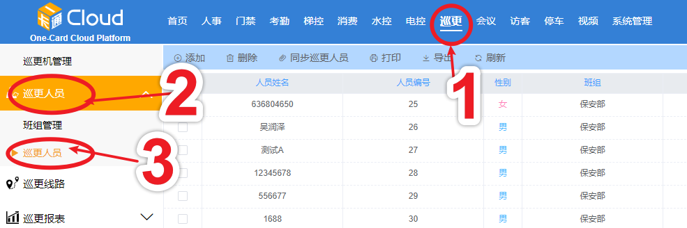 添加巡更人員
