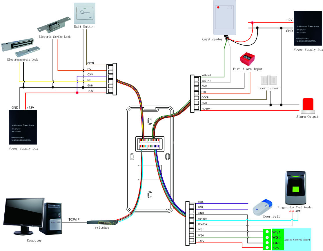Hello, welcome to use our products, thank you for your support. The following is the connection diagram of FC-A102E/M fingerprint and time attendance access controller: