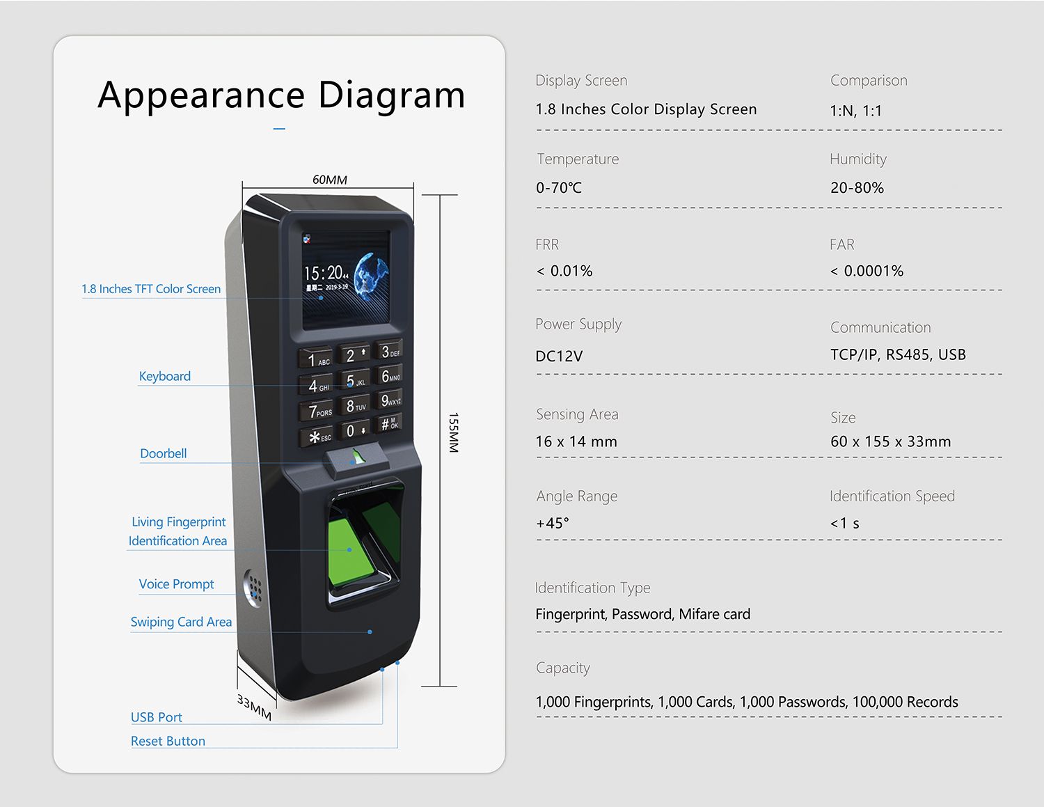 What is the Difference between FC-C103E and FC-D103E Fingerprint access controller? Is it just the Appearance and Size?