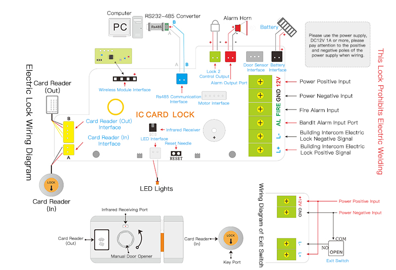The Wiring of FCL-989M Identification Card Electric Door Lock