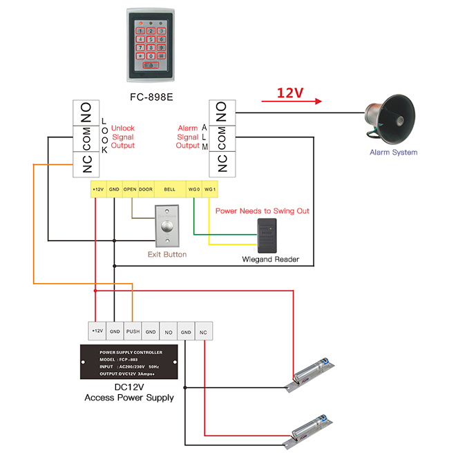 We chose your company's FC-898E access controller, FC-901 access control power supply and two bolt locks, I want to use a card to open only one lock, how do I connect it and how to set it?