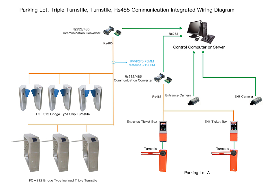 Parking Lot, Triple Turnstile, Turnstile, Rs485 Communication Integrated Wiring Diagram