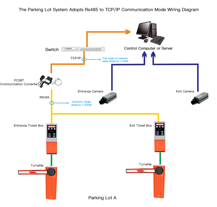 The Parking Lot System Adopts Rs485 to TCP/IP Communication Mode Wiring Diagram